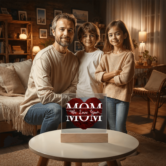 Cherished Mom LED Plaque | "We Love You Mom" Rose Heart Keepsake π